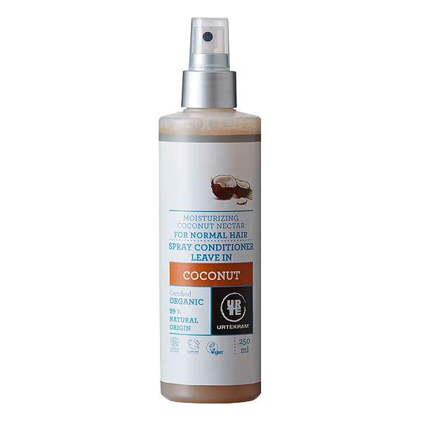 Urtekram Coconut Spray Conditioner with coconut nectar naturally helps to balance moisture and prevent dryness in normal hair. It has a wonderful scent of natural coconut sweetness and leaves your hair smooth and easy to comb. Spray and leave in dry as well as wet hair and do not rinse. Shake before use. Certified by Ecocert Cosmos Organic, vegan and of natural origin.
